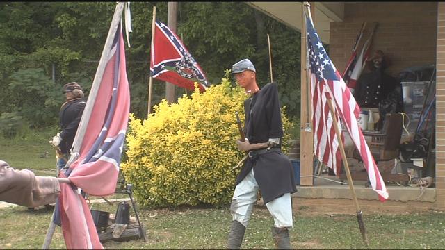 Confederate flags and mannequins depicting Civil War soldiers fill much of Kevin Smith’s front yard. He said each model and flag represents a certain battle. Smith said it’s his way of educating his community. “Presentation. I tried to put the display around town so tourist can see the history and draw tourism here,” said Smith.